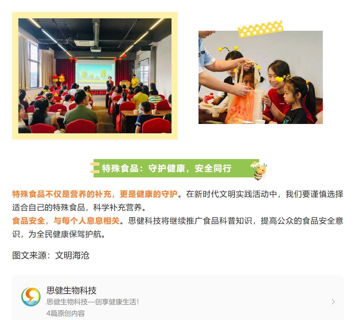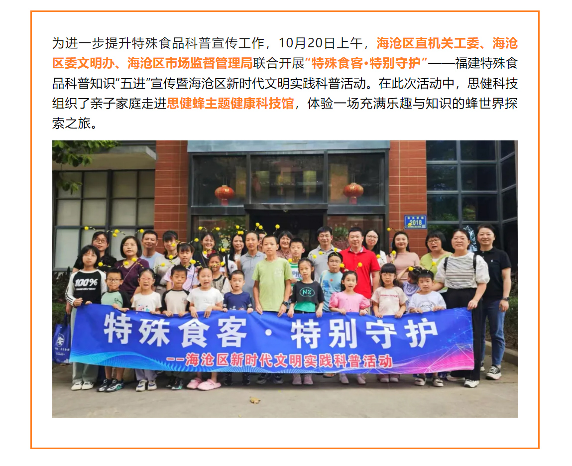特殊食品知多少?這場活動甜蜜又有料….福建特殊食品科普知識“五進(jìn)”宣傳暨海滄區(qū)新時代文明實(shí)踐科普活動走進(jìn)思健蜂主題科技館